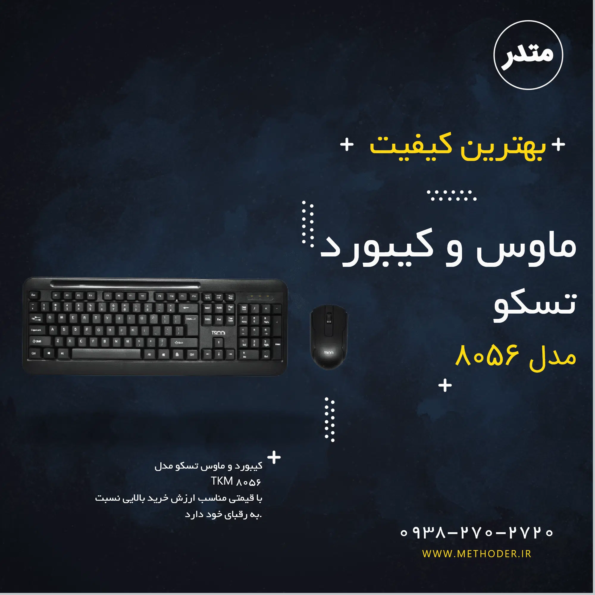 کیبورد و ماوس تسکو مدل TKM 8056 با قیمتی مناسب ارزش خرید بالایی نسبت به رقبای خود دارد. این کیبورد و ماوس از طریق پورت USB به کامپیوتر متصل شده و انرژی خود را از همین پورت تامین می‌کند و مناسب برای اداره ، منزل، ارگان های دولتی و…. می باشد.